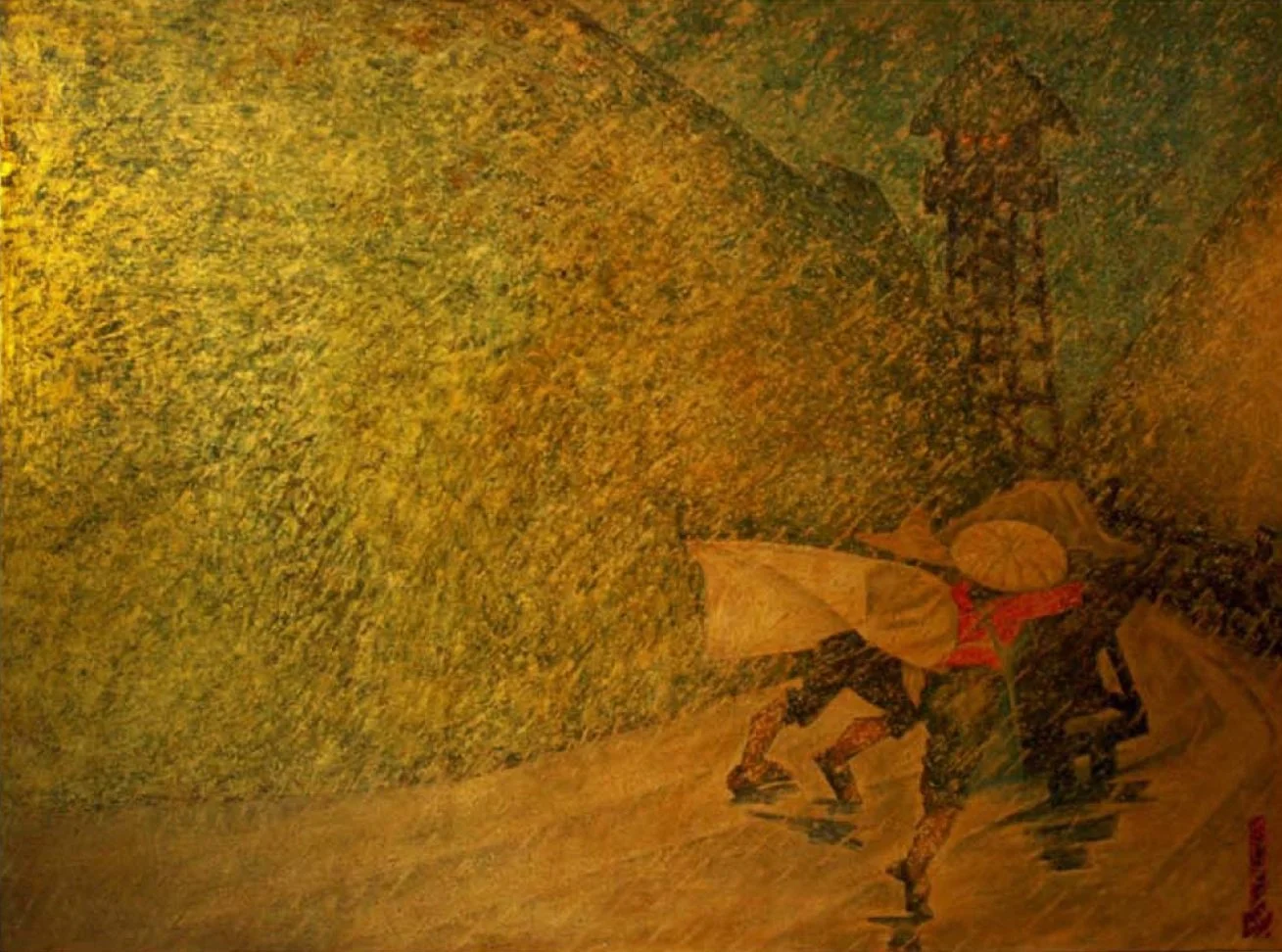 In 1971, Pham married Nguyen Thi Hao, and, the same year, he made his first woodblock, Nuoc bac com vang (Today Silver Water, Tomorrow Golden Rice). Marriage assuaged emotional pain, but brought practical difficulties. He now had a wife, and soon two small sons. “War is a most difficult time … to have children.” When he returned home from work, it was time for his wife to go to work, and time for him to look after the children. “Where was time to paint?”